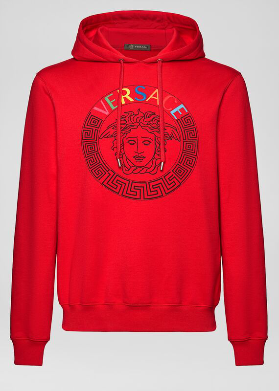 Versace Multicolor Medusa Logo Hoodie In Red Modesens